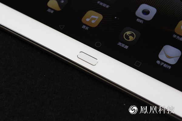 华为揽阅M2 10.0正面除了这块大屏幕以外,顶部拥有一个前置摄像头和华为logo,而屏幕底部则是一个指纹识别的传感器,虽然这枚按键无法按下,但是能实现一些手势操作。而华为揽阅M2 10.0的背面采用了两段式的金属机身设计,上面一段为了保证信号,所以采用了塑料材质,1300万像素的摄像头以及闪光灯在这一段的中间。机身背面最中间的位置是一个华为的logo,而底部中间则是一些认证的相关信息。