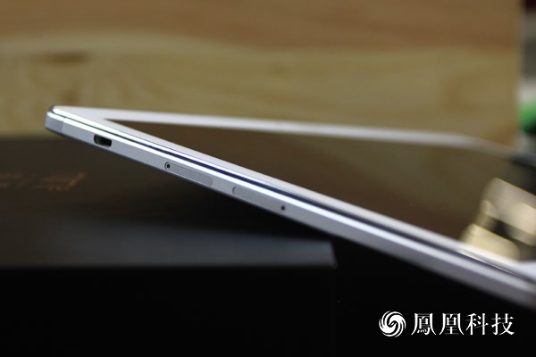 在细节方面,华为揽阅M2 10.0的机身顶部中间有一个降噪麦克风,最边缘的位置是一个3.5mm的标准耳机插孔,机身右侧拥有一个电源键和音量键,电源键采用了突出的设计方便用户盲操。在机身左侧,我们可以看到华为揽阅M2 10.0将microUSB接口放在了这里,虽然看起来有些怪异,但是从实际使用来说平板的电源放置在这一侧还是比较照顾用户体验的。