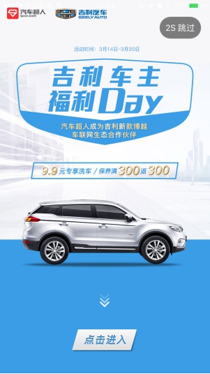 值得一提的是为了庆祝此次与吉利GUKI系统合作的达成上线,汽车超人推出“吉利车主福利Day”特别活动,9.9元专享洗车、保养满300返300特惠活动正在进行中,车主用户登录汽车超人App即可享受优惠。