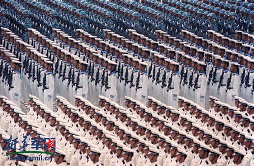 1999年,参加国庆50周年阅兵的海军院校方队。新华社记者王建民摄
