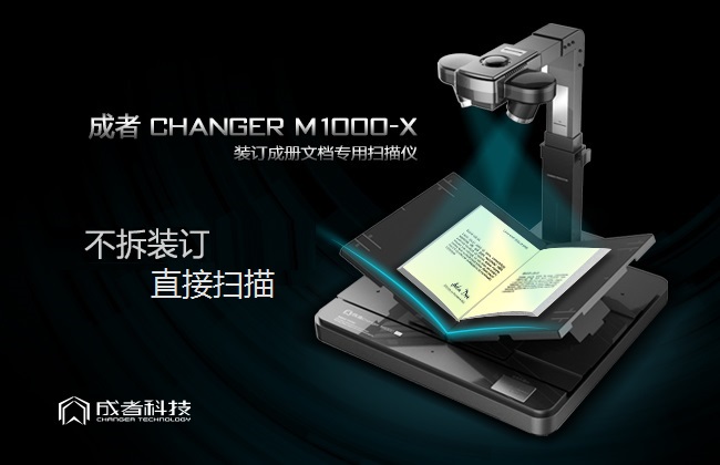 成者M1000扫描仪是一个镜头式的扫描仪,通过顶部的镜头和下方便于翻资料的支架,可以快速完成成册资料的扫描。