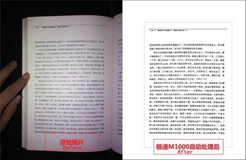 用户扫描时,只需要将书或者成册的资料放置在下方的书架之上,点击右侧的摄制按钮(或者脚踩控制),顶部的摄像头即可完成扫描的过程。因为采用的是摄像头拍摄,而非平板式扫描,这一“扫描”过程非常快即可完成。此外,借助连续翻书的过程,可以完成快速的扫描过程。目前,M1000的扫描速度可以达到80页每分钟。