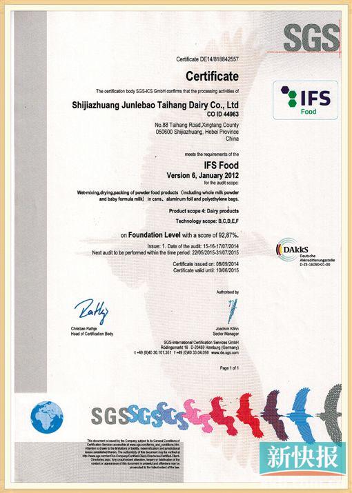 君乐宝牧场奶粉率先通过欧盟IFS认证国际品质比肩德国制造