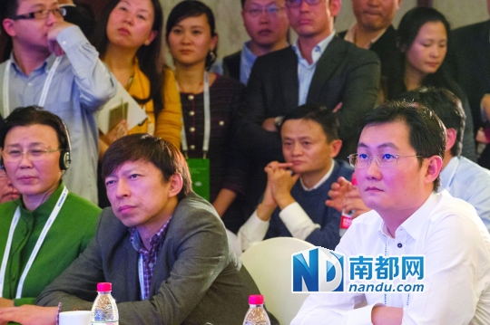 昨天,腾讯集团董事局主席马化腾(右一)、阿里巴巴集团董事局主席马云(右二)、搜狐公司董事局主席张朝阳(右三)出席“移动互联网”分论坛。当天,首届世界互联网大会在浙江乌镇开幕,世界各地的互联网业界人士齐聚于此,纵论互联网发展与未来。 新华社