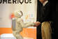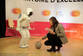 当地时间2014年11月25日,法国圣康坦,本田公司推出的人形机器人ASIMO正在展示它的行走、跳跃、跑动、端咖啡、踢足球、握手以及舞蹈的能力。