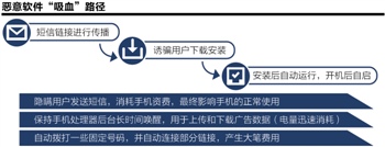 为操作系统为Symbian 6.0第三版、第五版的手机终端用户“量身订作”的“吸血”APP,便是通过网络下载进行传播。恶意软件伪装成功能软件诱骗用户下载,用户下载安装后不显示图标,安装完成后在后台联网。一旦使用了这一APP,智能手机将会自动屏蔽10086短信,用户手机无法正常看到收到的10086短信。同时,这类软件会在消费者毫不知情的情况下通过手机后台自动联网,从而消耗客户网络漫游的资费。
