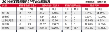 银行系、国资系等非民营系P2P平台在2014年发展迅猛,平台总数从1月的13家增至12月的75家,贷款余额也从35.21亿元增至363.01亿元。具有代表性的P2P平台包括,江苏金农公司的“开鑫贷”,北京市海淀区国有资产投资经营有限公司的“众信金融”,民生电商的“民生易贷”,包商银行的“小马Bank”等。尽管非民营系平台数量仅为民营系的二十分之一,但贷款余额总量已超过民营系总额的一半。