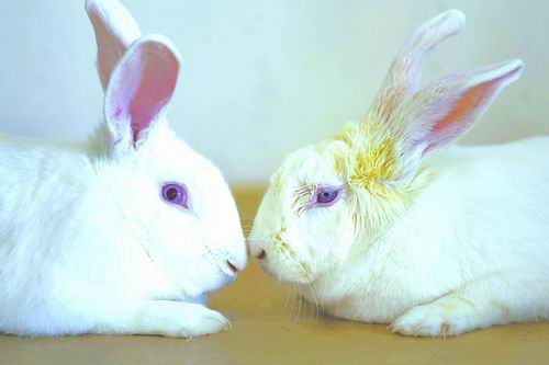 近日,云南省中心眼库的科研人员用兔子做人工眼角膜移植实验。图左为正常的兔子,眼睛是红色的,右图为做过人工眼角膜手术的兔子。 今年是云南省中心眼库建立21周年,眼角膜库存匮乏的情况越来越严重,近一年更是