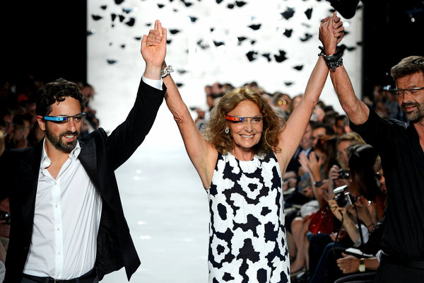 在2012年的纽约时装周,著名服装设计师黛安·冯芙丝汀宝(Diane von Furstenberg)佩戴了一副红色的谷歌眼镜亮相,她的模特们也都佩戴着不同颜色的谷歌眼镜走秀。之后,在一段精心制作的视频中,冯芙丝汀宝向谷歌设计师伊莎贝尔·奥尔森(Isabelle Olsson)表示:“我们向世界展示了谷歌眼镜。”