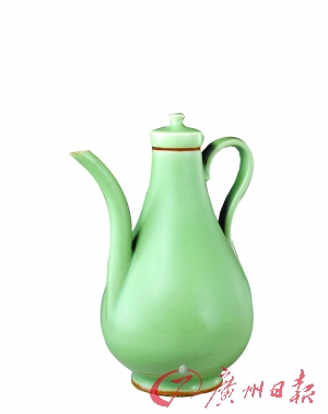 此外,元龙泉青瓷造型在继承前代的同时亦有许多新创,像高足杯、葫芦瓶、环耳瓶、双系扁瓶、凤尾瓶、荷叶式盖罐、梨形执壶、动物形砚滴等都为前代所未见,且时代特征突出,如环耳瓶元明两代都有制作,但元代产品一般环耳较大,且粘附于器身,而明代制品的环耳则是活动的环。另外,器型可分大中小三式的荷叶式盖罐也堪称元龙泉的典型器,其造型特点是罐盖多似一片翠绿硕大的荷叶,盖沿卷曲,有的盖钮还为一段枝梗。