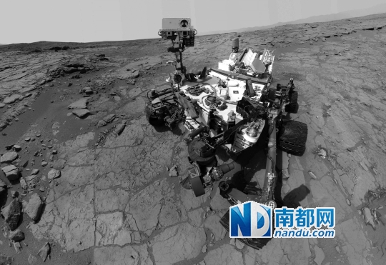 这张美国航天局2013年2月3日公布的图像显示的是“好奇”号火星车自拍的照片。美国东部时间2012年8月6日“好奇”号火星车在火星盖尔陨坑中心山脉的山脚下成功着陆,旨在探索火星过去及现在是否适合生命存活。