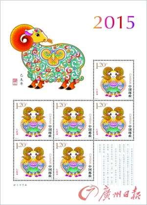 2015《乙未年》生肖邮票(小版)。