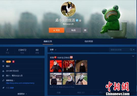 当日,孟非具有3492万余名“粉丝”的个人所有微博信息突然全部消失,所有关注被取消,且博主易名为“非诚的非”,与此同时,其另一具有15万“粉丝”的“孟小发的生活”微博上则晒出了18岁爱女生日靓照,并祝福“苹果18岁生日快乐”。