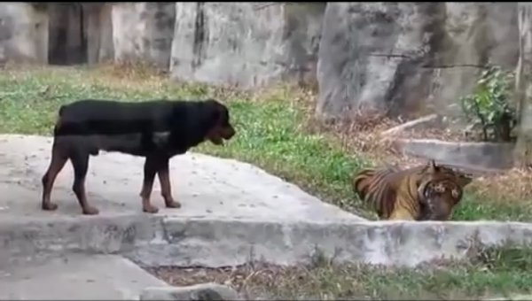 近日,一则大黑狗虎口夺食的视频风行网络。