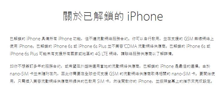 凤凰科技讯 北京时间9月15日消息,据苹果官网显示,港版iPhone 6S/6S Plus无法使用电信网络,要买港版iPhone 6s的注意了。