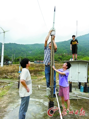 陈绍东的研究团队检修引雷装置。