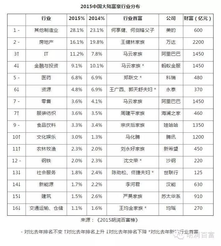 今年新上榜富豪中,人数最多的是制造业和IT。