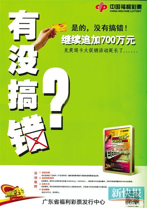 为感谢新老彩民对社会福利和公益事业的大力支持,广东省福彩中心决定加大力度回馈彩民,继续追加700万元延长促销期限,令此次促销的总奖金增至1400万元。