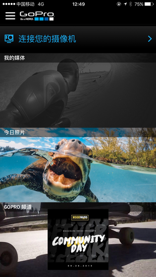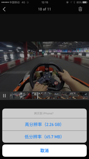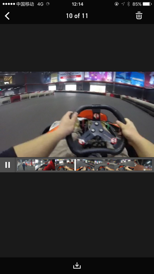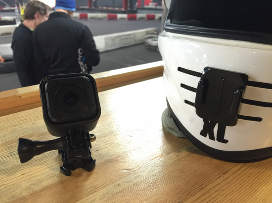 首先,我们要使用手机下载GoPro中文版App,并通过蓝牙和wifi与GoPro Hero4 Session相连,此时我们就可以通过手机App来事实监控和调整GoPro Hero4 Session的拍摄参数了。卡丁车是一项在运动过程中经常会出现碰撞的极限运动,因此对于拍摄器材的防抖性能要求较高。
