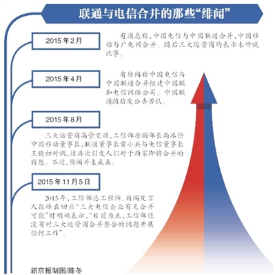 今年2月有消息称,中国电信与中国联通合并,中国移动与广电网合并。受传闻影响,A股中国联通、港股中国电信和中国移动股价都大幅上涨。但很快该传闻就被打破,联通方面表示闻所未闻,电信方面也表示没听说,中国移动表示,没有接到过任何相关通知。