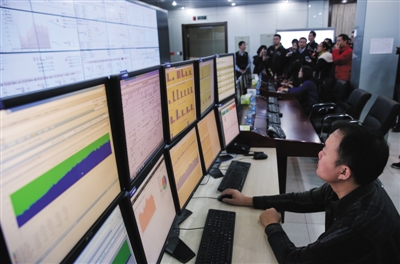 12306票务系统的研发中心内,一位技术人员正在实时检测网站数据。
