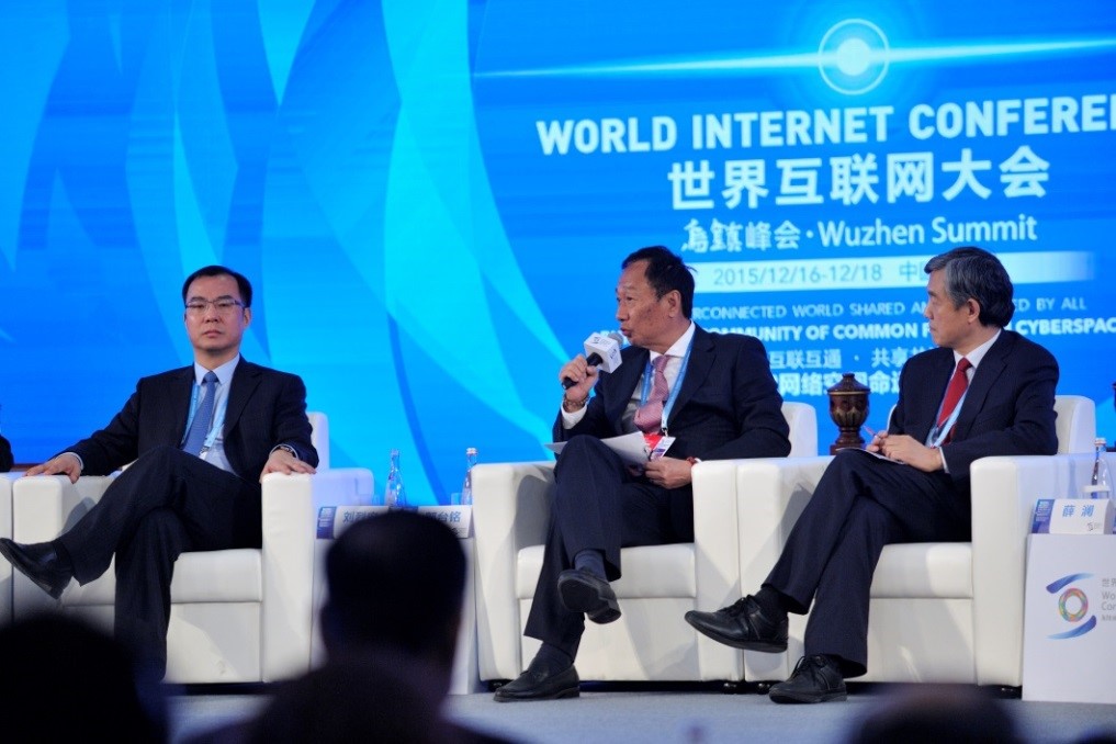 12月17日下午,500多位嘉宾齐聚乌镇枕水酒店龙凤厅,参加国家网信办、世界经济论坛主办的“乌镇论道•数字中国”论坛。全国政协副主席王钦敏、国家网信办副主任庄荣文和世界经济论坛首席商务官Murat Sonmez作开篇致辞。中国电子信息产业集团有限公司总经理刘烈宏,华人文化产业投资基金董事长、华人文化控股集团董事长黎瑞刚,泰康人寿董事长兼首席执行官陈东升,清华大学公共管理学院院长薛澜,富士康科技集团首席执行官郭台铭,美团大众点评首席执行官王兴等6位大咖同台共论“产业转型”。以下是郭台铭总裁的主要观点: