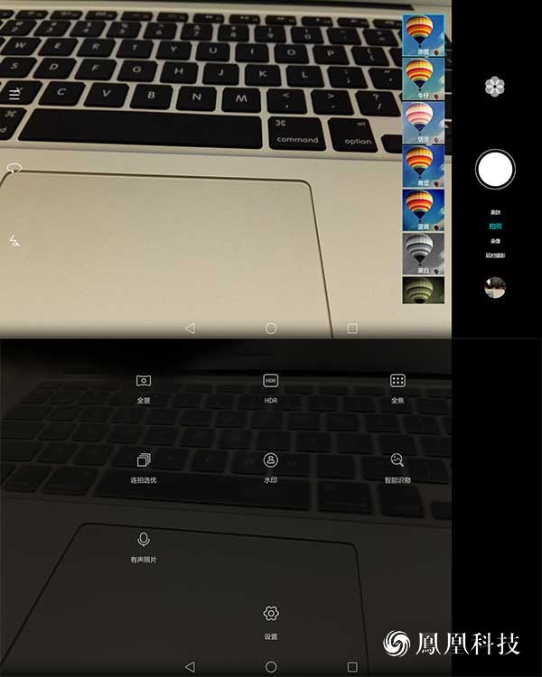 在软件方面,我们可以看到华为揽阅M2 10.0同样针对于拍照进行了相应的适配,横握平板时,菜单、摄像头切换以及闪光灯控制都在左手拇指可以轻松操作的位置,而滤镜、快门以及拍照模式则都在右手的拇指可以轻松操作的范围之内,体验方面值得肯定。
