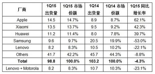 一方面原因来自于智能手机出货量放缓:根据市场研究机构IDC公布的《全球手机季度跟踪报告》,2015年全球智能手机出货量增幅将首次滑落至个位数。今年第一季度,中国智能手机市场出货量出现了6年以来的首次下滑,第一季度出货量相比去年同期下降了4.3%。