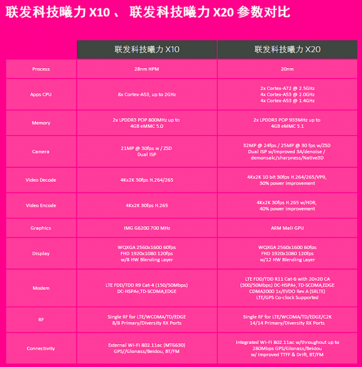 (Helio X10与X20的参数对比)