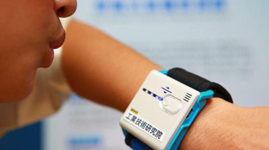 近期中国台湾工研院开发省电又轻薄短小的酒测手表,只要对着酒测手表轻轻一吹,就可以马上测出酒精浓度。
