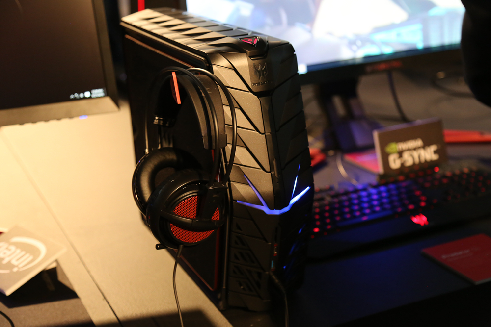 Predator G1电竞台式机,专门针对偏好桌上型电脑的电竞玩家,设计上采用一种铠甲似的造型。同时可以通过更改驱动设置来对机箱的灯光进行更改。主机空间可达16公升,可安装目前最强的全尺寸显卡,最高可支持到NVIDIA GeForce GTX Titan X等级,搭载第六代Core 系列处理器,最大支持64 GB DDR4内存、4TB HDD硬盘或512 GB 固态硬盘。
