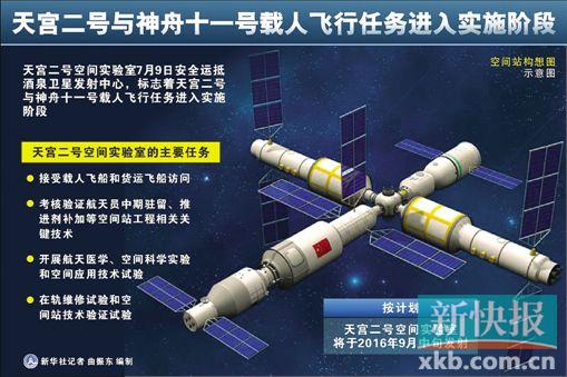 按计划,天宫二号空间实验室将于2016年9月中旬发射,之后开展在轨测试并建立自主运行模式,做好迎接神舟十一号载人飞船访问的准备。![]()