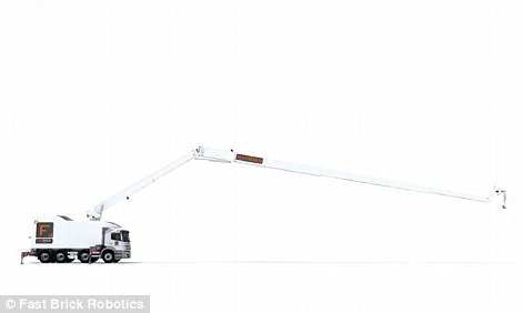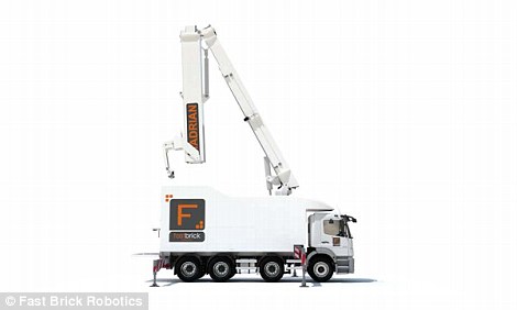 Hadrian X主体置于卡车车身上,托运方便,有一条28米长的伸缩臂,原地不动就可以盖起一座房。它可以24小时、365天持续工作,巴布工程师在考虑“我们行不行”的时候,Hadrian X已经码了一摞砖了。Fastbrick公司称Hadrian X可以彻底改变建筑业。