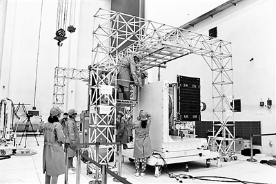 量子科学卫星“墨子号”在进行太阳翼展开试验