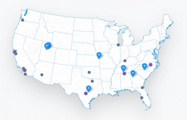 Fiber 仅在数量有限的城市运营,蓝色锚点是已经运营的城市,紫色是即将上线的城市,灰色是有潜力的城市