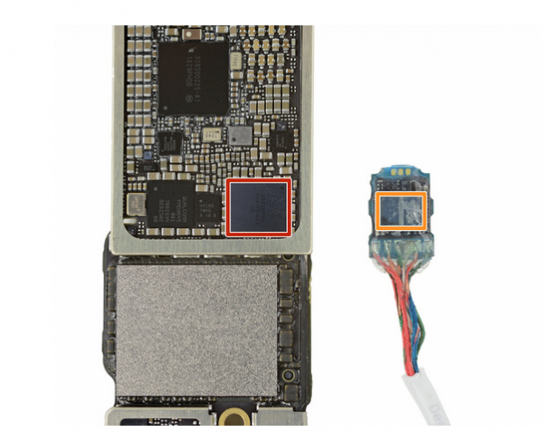 iPhone 6s 以及此前的iPhone 机型中,数字模拟转换器DAC和模拟数字转换器ADC 的功能都是内部处理。通过耳机接口完成的模拟输入和输出主要由逻辑板上的一个芯片来控制——定制的苹果/凌云逻辑芯片,零件号码为338S00105。在iPhone 7 中我们还是可以看到这个零件,这是因为即使iPhone 7 没有了3.5 毫米耳机接口,手机还是需要与内置的扩音器和麦克风有“交流”,这两个部件使用的都是模拟信号。