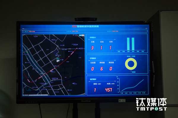 目前团队正在对车辆进行紧张的调试,双十一实验性试运营进行时,在智能配送车监控系统的屏幕上,将实时显示每台无人配送车的状态,包括电池电量、送件信息、传感器状态,以及每辆车上摄像头实时传输的实景画面。