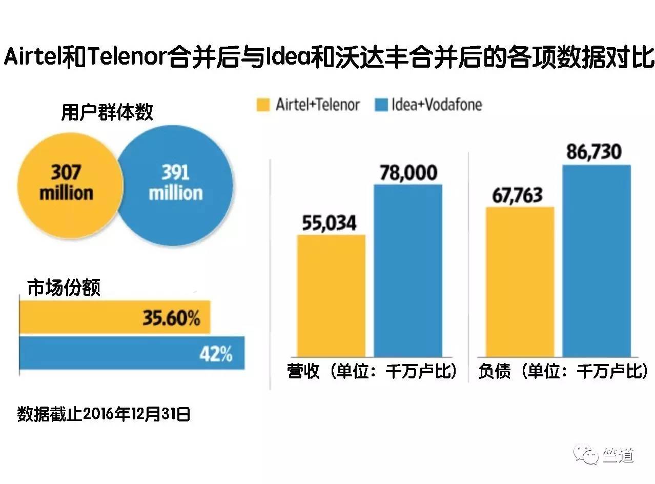 合并后的新公司将拥有近4亿用户,超过Airtel的2.65亿用户成为印度电信业老大。有报道称,Airtel正准备与市场排名第八的挪威电信集团Telenor的印度分公司合并。但即使如此,在规模上仍然不及沃达丰和Idea合并后的新公司。