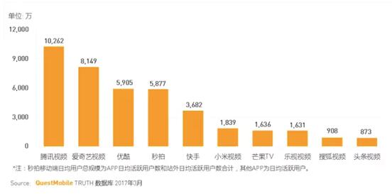 以上数据为移动端视频应用日均活跃用户数
