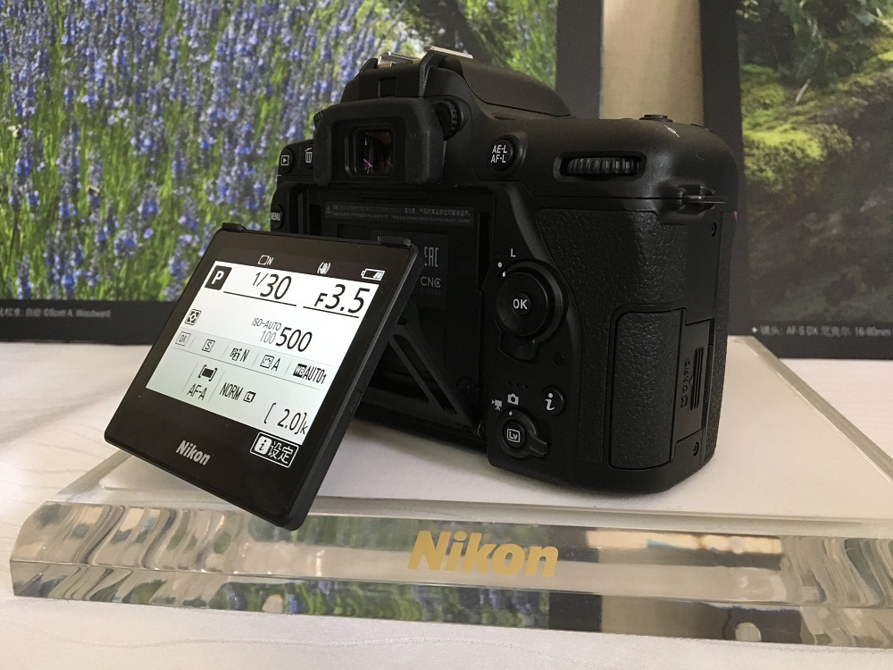 在外观上,D7500保持了这个系列的一贯风格,相比于前一代,D7500最大的不同在于其增加了一块可翻折的3.2寸触摸屏,可以实现触控对焦、触控快门、滑动浏览照片等操作,在机身重量上,D7500采用了碳纤维合成材料一体化结构,整体感觉轻巧了很多,同时手柄深度加大,握持更加的舒适。