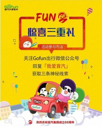 Gofun出行负责人介绍,北京、上海、厦门、青岛、武汉、成都、长沙、南京、西安、佛山、天津、宁波等Gofun出行覆盖的城市都在首汽集团周年庆活动行列,用户可以登陆APP端,参与“FUN66惊喜三重礼”与“Gofun Day 充660返660”活动。“此次Gofun出行推出大规模优惠活动,除了庆祝首汽集团66周年,还希望在提升既有用户活跃度及粘性的同时,为即将开城的昆明、桂林等城市充分造势,加快Gofun出行的落地。”