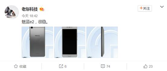 今天下午3点魅族会在北京演艺中心召开新品发布会,发布魅蓝E2。临近发布会,有关魅蓝E2的消息还是不断曝出,微博网友@老爆科技发出了工信部认证的魅蓝E2,而且还说了“很稳”,看来这就是魅蓝E2了。
