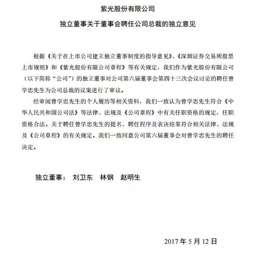 今日下午,紫光股份召开第六届董事会第四十三次会议,会议宣布聘任曾学忠为紫光股份有限公司总裁。