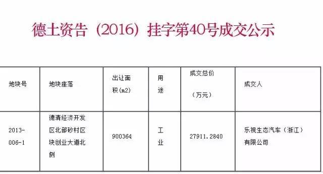 2016年12月9日,乐视以2.79亿元拍下坐落于德清经济开发区北部砂村区块创业大道北侧的1350.5亩土地,并承诺投资总额高达200亿元。