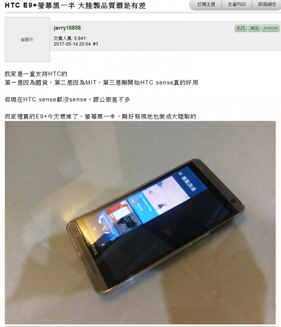 前不久台湾网友吐槽还称大陆生产的HTC 质量差,对此你们怎么看?