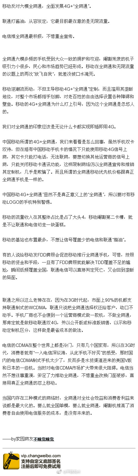 6,开眼视点:三大运营商对全网通各怀心思 你怎么看?
