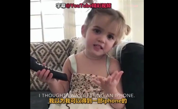 一段美国2岁小女孩因收到一部假的iPhone发怒吐槽的视频,在YouTube上迅速走红。