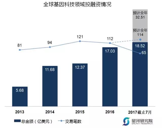 星河研究院今天将通过一些数据来分析一下基因科技领域的投资现状及发展趋势。