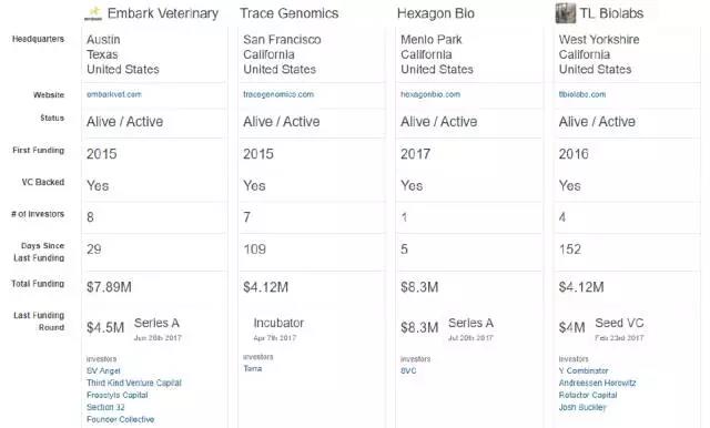 由于基因技术既是科技/软件的前沿技术,也是生物学的一个领域,因此吸引了这两个行业的广泛的投资者。同时基因科技的使用者也包括企业和个人消费者,因此也同样吸引了ToB和ToC的专业投资机构。在基因科技领域主要的投资机构包括Y Combinator、Illumina和Polaris Partners等。