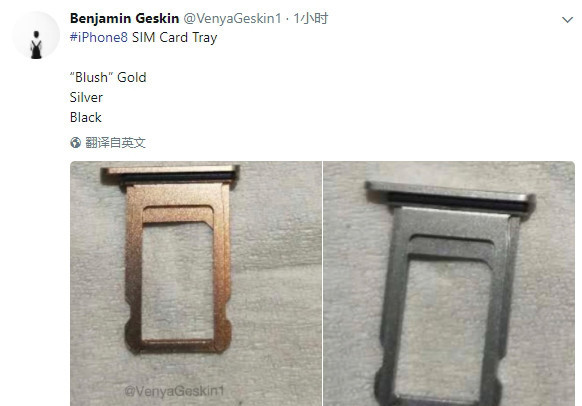 爆料大神@Benjamin Geskin近日晒出了iPhone 8的SIM卡槽,包括了新的“腮红金”以及银色两种,依然只支持一张SIM卡,也就是说iPhone 8不会支持双卡双待。